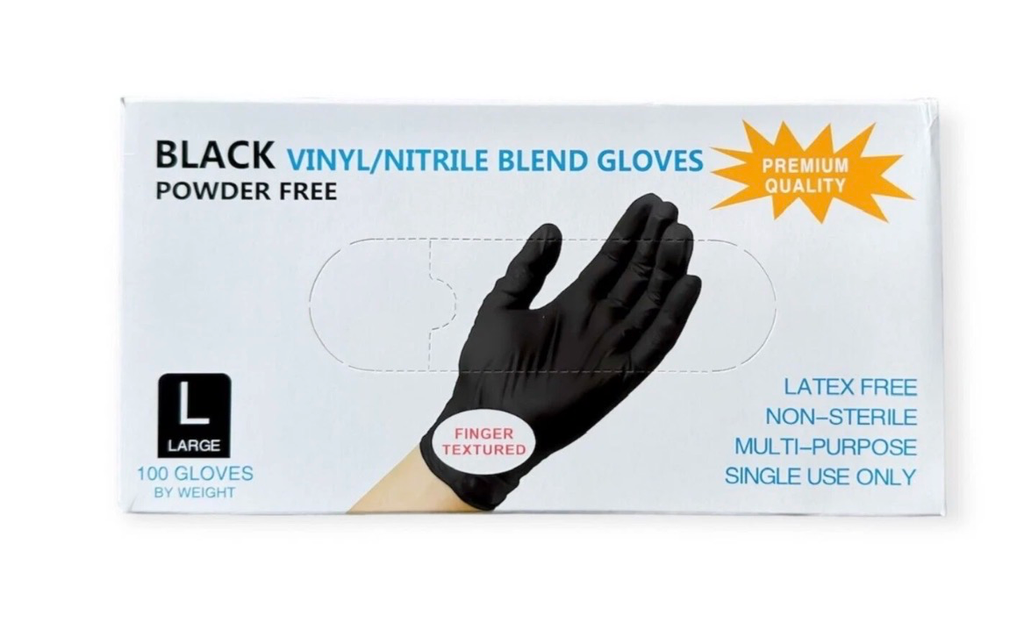 BLACK VINYL POWDER FREE GLOVES LARGE